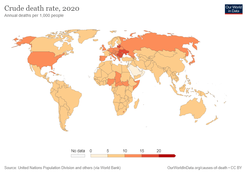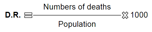 1 DEATH RATE or number of deaths in relation to the total population multiplied by 1000, expressed in per mile.