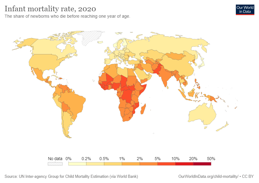 2 INFANT MORTALITY RATE calculates the number of dead babies before their first birthday in a place during a year multiplied by a 1000.
